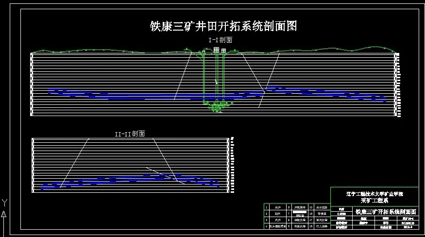 铁康三矿拥有两层可采煤层,煤层和煤厚分别是1#(8.4)、2#(11.6)。煤层南北走向约为3836m,东西倾向约为5660m,井田面积约为18.7 km2。平均倾角为8度。工业储量为4.97亿吨,设计储量为4.69亿吨,可采储量为3.10亿吨。本设计从矿井的开拓、开采、运输、通风、提升及工作面的采煤方法等各个环节进行了详细的叙述,设计严格遵守《设计规范》和《煤矿安全规程》,整个矿井采用了先进的皮带运输,提高了运输能力,为矿井的增产打下了良好的运输基础。采煤方法采用倾向长壁综合机械化采煤方法和走向长壁综合机械化采煤方法。工作面支护方式为液压支架支护方式,端头支护采用端头支架。本设计采用立井单水平上下山开拓,主井采用箕斗提升,副井采用罐笼提升,大巷采用集中布置。通风方式为中央并列式。本次设计是铁康三矿新井设计,地质资料都是在实习矿上搜集的,在指导教师的指导下,并合理运用平时及课堂上积累的知识,查找有关资料和文献,力求设计出一个高产、高效、安全的现代化矿井。