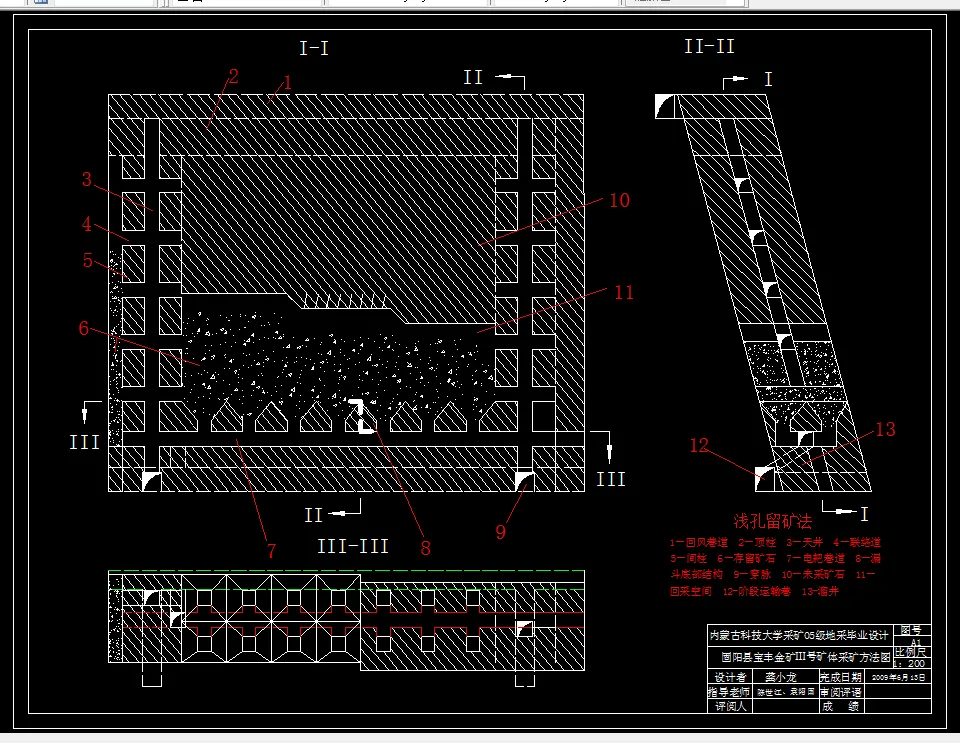 关键词:下盘竖井开拓;浅孔留矿法;中央对角式通风;