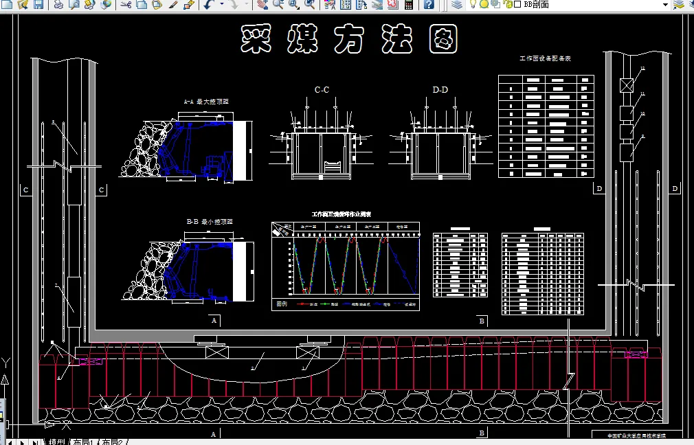采用双滚筒采煤机割煤,往返一次割两刀。采用“三八制”工作制度,截深0.8m,每天六个循环,循环进尺4.8m,月推
