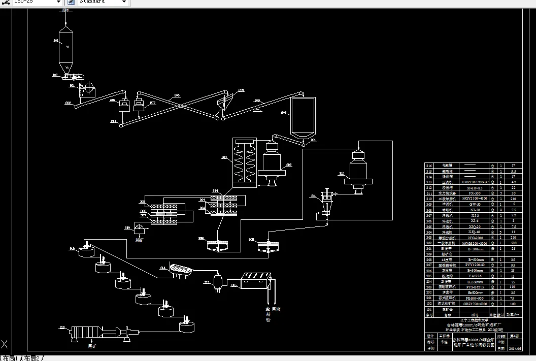 对设计工艺流程进行了工艺指标计算,包括破碎、筛分、磨矿、浮选、氰化、矿浆和脱水流程。