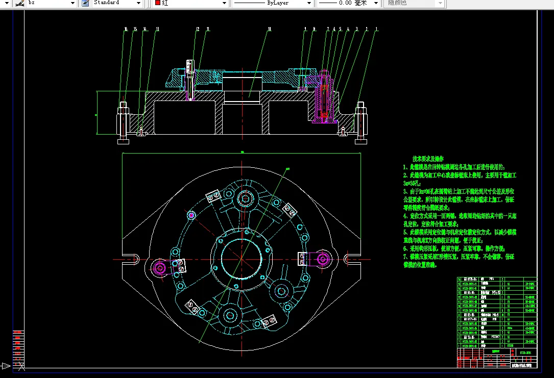 本次设计是针对阀导承的制造与工艺, 详细地介绍了该产品的整个加工方案的拟订过程,并针对其中钻孔的工序所需的专用夹具进行了设计。工艺设计中依据现有的条件,仍选用传统的机械加工方式进行编制,但又根据零件斜孔特点及其结构性能的要求,部分按照非常规的加工路线进行加工,更好的确保了产品的质量和技术性能要求,也体现产品的加工特点。另外,在专用夹具的设计中,采用了螺栓联接式夹具体,与传统的焊接式相比,虽然成本略有提高,但更利于夹具以后更换、维修,提高了材料的利用率。此外为次道工序所加工的孔设计的夹具还要考虑到加工的孔是斜孔,夹具还要保证其与水平面的夹角,这也增加了夹具设计的难度。