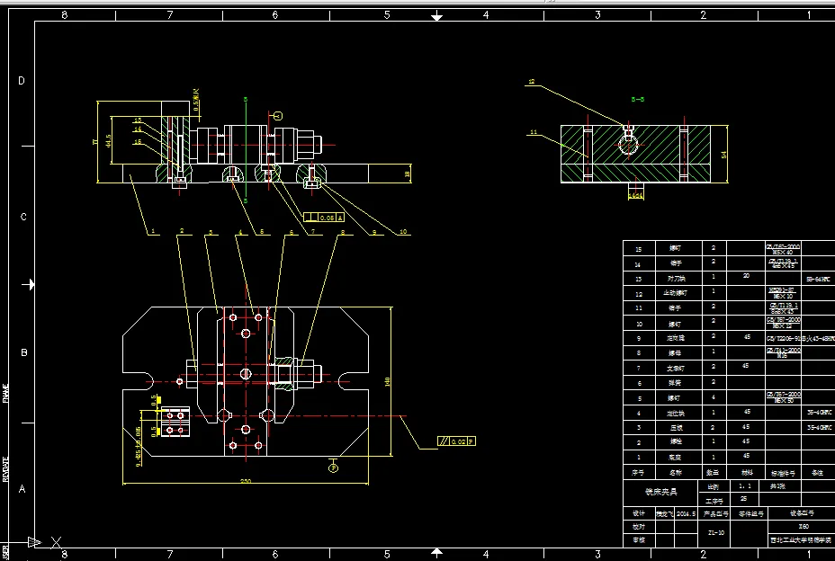 主要的设计思路是:分析零件特点及拟订合理的工艺规程,依据工艺规程设计,选择机床和设计合理的夹具。在机械加工中如果能广泛地使用夹具,就能极大的节省加工时的辅助时间,以减轻工人的劳动量,提高产品的质量和劳动生产率。 设计夹具一般先对原始材料进行分析,明确设计要求和意图,然后提出具体的定位、夹紧、对刀方案和夹具体的一般结构。本文采用六点定位的定位方法,夹紧螺钉与双向压板组合的夹紧方法,为保证设计的可靠性,还对夹具的精度进行了分析。