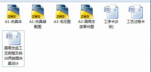 圆周支座零件加工工艺及夹具设计是包括零件加工的工艺设计、工序设计以及专用夹具的设计三部分。在工艺设计中要首先对零件进行分析,了解零件的工艺再设计出毛坯的结构,并选择好零件的加工基准,设计出零件的工艺路线;接着对零件各个工步的工序进行尺寸计算,关键是决定出各个工序的工艺装备及切削用量;然后进行专用夹具的设计,选择设计出夹具的各个组成部件,如定位元件、夹紧元件、引导元件、夹具体与机床的连接部件以及其它部件;计算出夹具定位时产生的定位误差,分析夹具结构的合理性与不足之处,并在以后设计中注意改进。