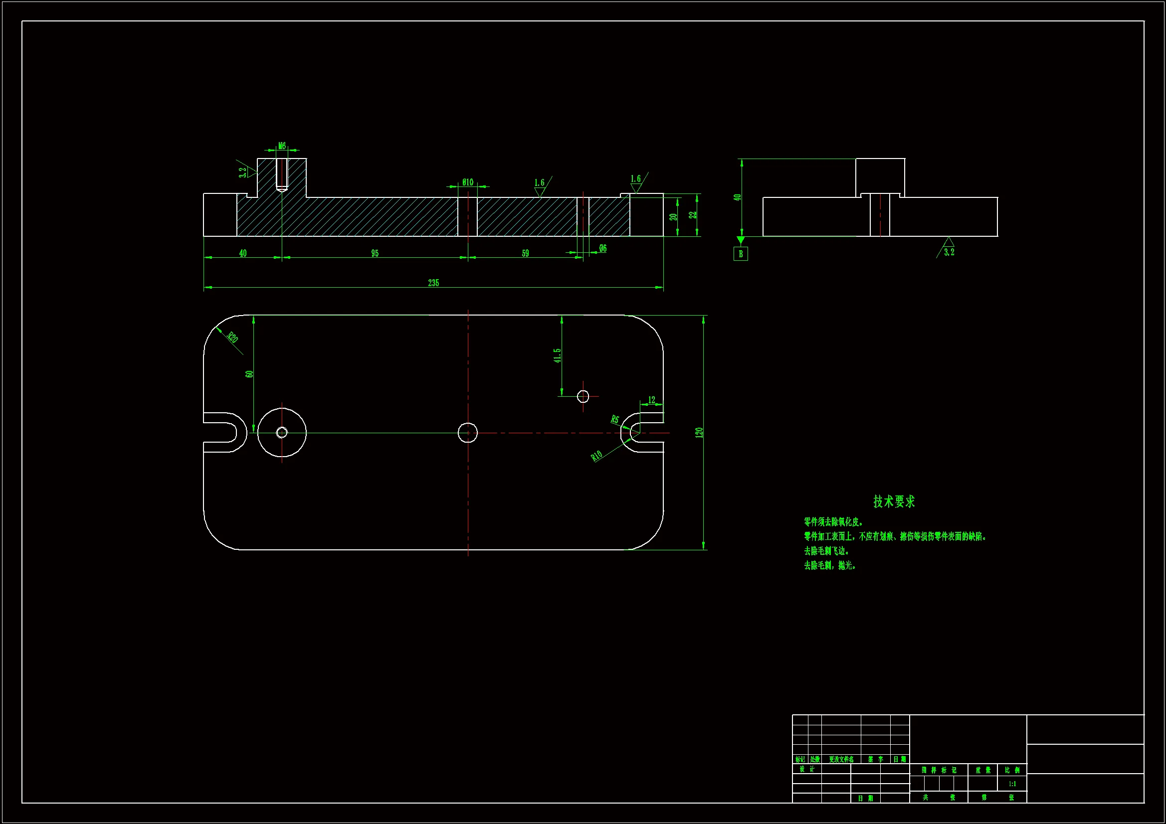 该设计进行前根据零件图纸上的待加工孔的技术要求,根据所学的夹具设计的基本知识、设计方法,根据零件拟定适合的夹具;在保证两个孔加工尺寸和位置精度的前提下,正确的装夹、定位、锁紧;针对工件在装夹时需要定位准确、操作便捷,结构设计在保证夹具功能同时,也要考虑夹具零部件间相对运动操作要方便快捷。