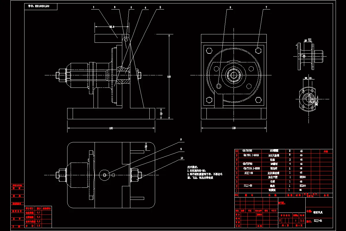 课程设计中我们针对法兰盘零件制定了两种加工工艺路线,并对其进行了计算得出选择一种最优的方案。对于夹具设计部分我们也制定了两套整体方案及定位方案,通过比较选择最合理的方案,并最终用CAD画出其装配图和夹具零件图。