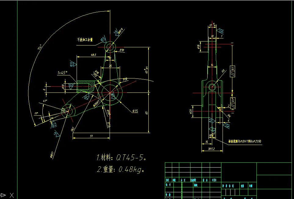 导向丝杆右支架的加工工艺及铣端面夹具设计是包括零件加工的工艺设计、工序设计以及专用夹具的设计三部分。在工艺设计中要首先对零件进行分析,了解零件的工艺再设计出毛坯的结构,并选择好零件的加工基准,设计出零件的工艺路线;接着对零件各个工步的工序进行尺寸计算,关键是决定出各个工序的工艺装备及切削用量;然后进行专用夹具的设计,选择设计出夹具的各个组成部件,如定位元件、夹紧元件、引导元件、夹具体与机床的连接部件以及其它部件;计算出夹具定位时产生的定位误差,分析夹具结构的合理性与不足之处,并在以后设计中注意改进。