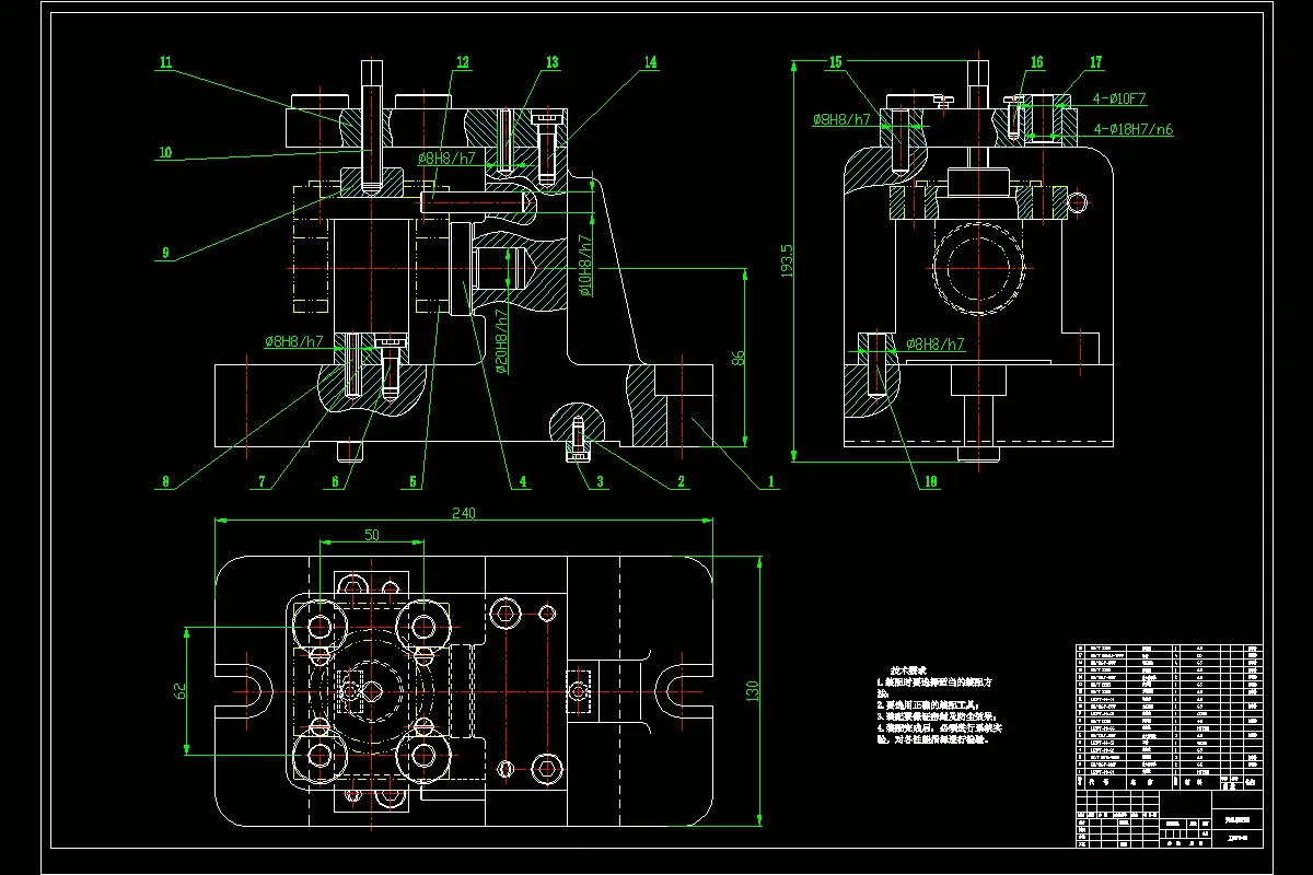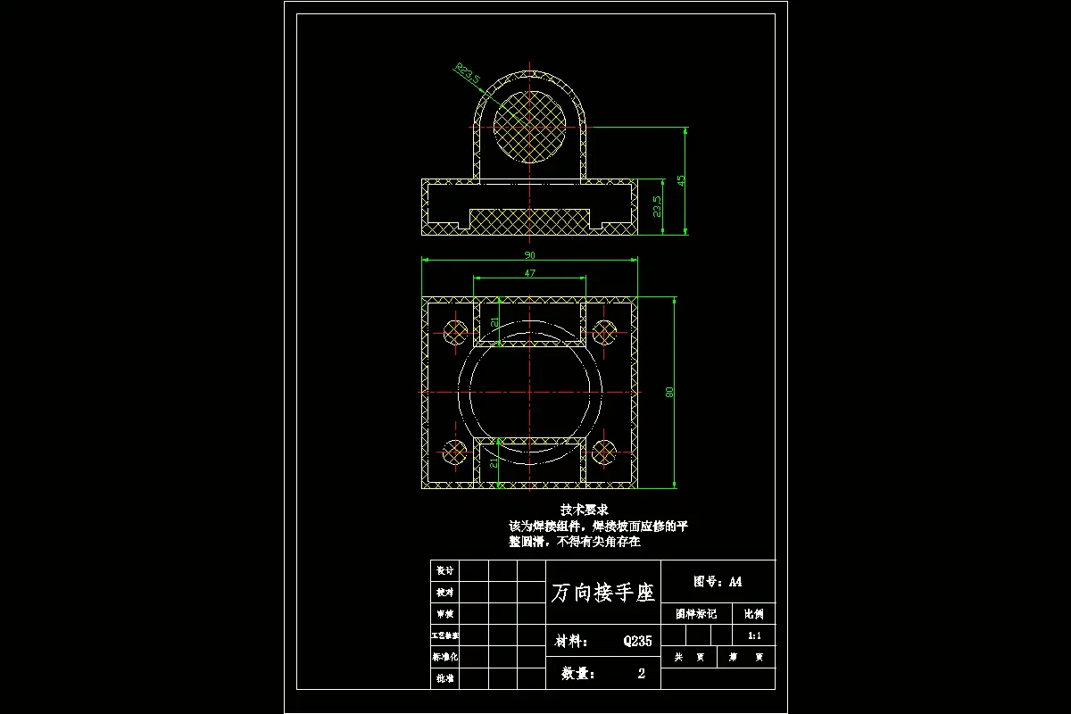 关键词:万向接手座;加工工艺;4-Φ10通孔;钻床;专用夹具
