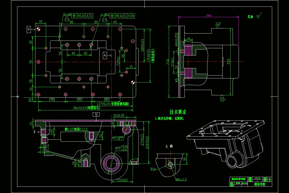 本次设计课题是“拖拉机后盖机加工艺及钻孔夹具设计”。分为拖拉机后盖的加工工艺与加工中某一步骤的专用夹具设计两部分。加工工艺部分需要了解工艺设计内容,熟知工艺计算方法,能对工艺内容进行正确的分析及计算。在我的工艺路线中以底面作为基准是合理的,本方案满足粗基准选择要求及精基准选择的四项原则。本次设计的夹具是为钻床使用的专用夹具,此夹具有针对性强、操作简便、生产效率高等特点。本夹具的设计能满足机床夹具设计的基本要求,可以保证零件的质量,具有生产效率高、制造成本低、结构工艺性良好的优点。