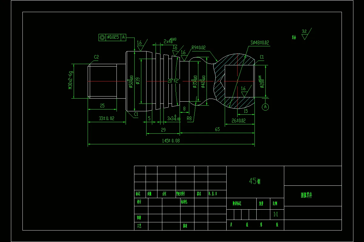 圆弧零件的加工工艺规程和车M30×2外螺纹的工艺设计、工序设计以及专用夹具的设计三部分。在工艺设计中要首先对零件进行分析,了解零件的工艺再设计出毛坯的结构,并选择好零件的加工基准,设计出零件的工艺路线;接着对零件各个工步的工序进行尺寸计算,关键是决定出各个工序的工艺装备及切削用量;然后进行专用夹具的设计,选择设计出夹具的各个组成部件,如定位元件、夹紧元件、引导元件、夹具体与机床的连接部件以及其它部件;计算出夹具定位时产生的定位误差,分析夹具结构的合理性与不足之处,并在以后设计中注意改进。