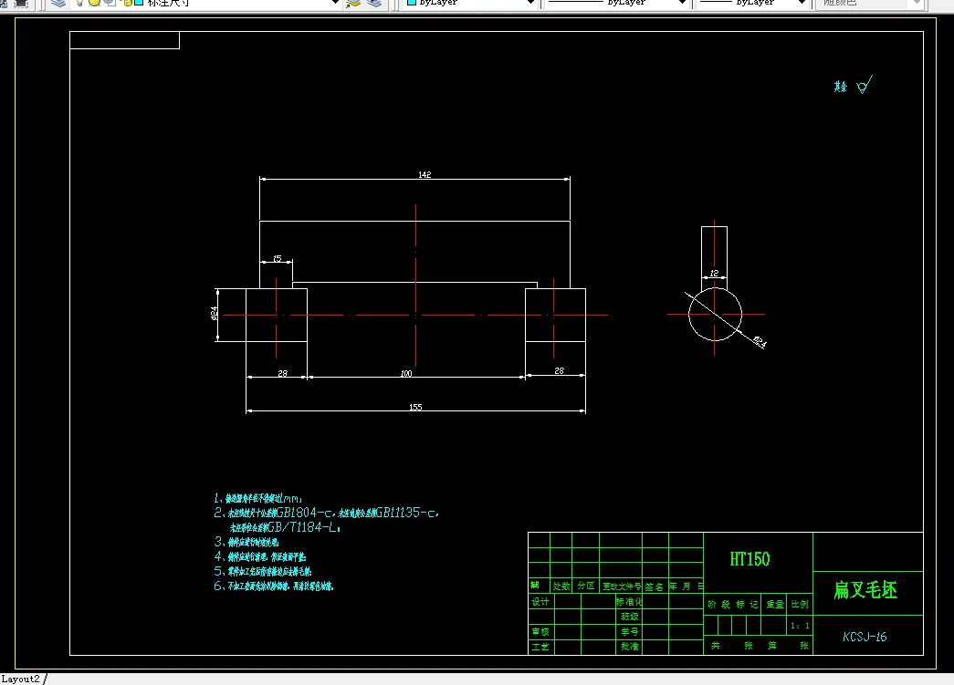 扁叉零件加工工艺及夹具设计是包括零件加工的工艺设计、工序设计以及专用夹具的设计三部分。在工艺设计中要首先对零件进行分析,了解零件的工艺再设计出毛坯的结构,并选择好零件的加工基准,设计出零件的工艺路线;接着对零件各个工步的工序进行尺寸计算,关键是决定出各个工序的工艺装备及切削用量;然后进行专用夹具的设计,选择设计出夹具的各个组成部件,如定位元件、夹紧元件、引导元件、夹具体与机床的连接部件以及其它部件;计算出夹具定位时产生的定位误差,分析夹具结构的合理性与不足之处,并在以后设计中注意改进。