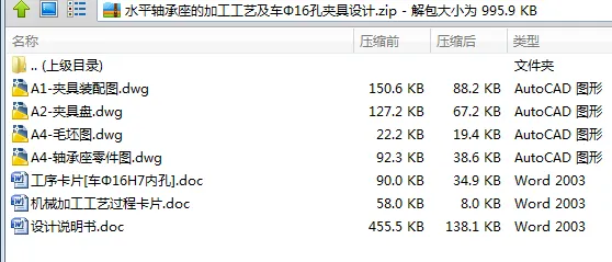 水平轴承座加工工艺规程及夹具设计是包括零件加工的工艺设计、工序设计以及专用夹具的设计三部分。在工艺设计中要首先对零件进行分析,了解零件的工艺再设计出毛坯的结构,并选择好零件的加工基准,设计出零件的工艺路线;接着对零件各个工步的工序进行尺寸计算,关键是决定出各个工序的工艺装备及切削用量;然后进行专用夹具的设计,选择设计出夹具的各个组成部件,如定位元件、夹紧元件、引导元件、夹具体与机床的连接部件以及其它部件;计算出夹具定位时产生的定位误差,分析夹具结构的合理性与不足之处,并在以后设计中注意改进。
