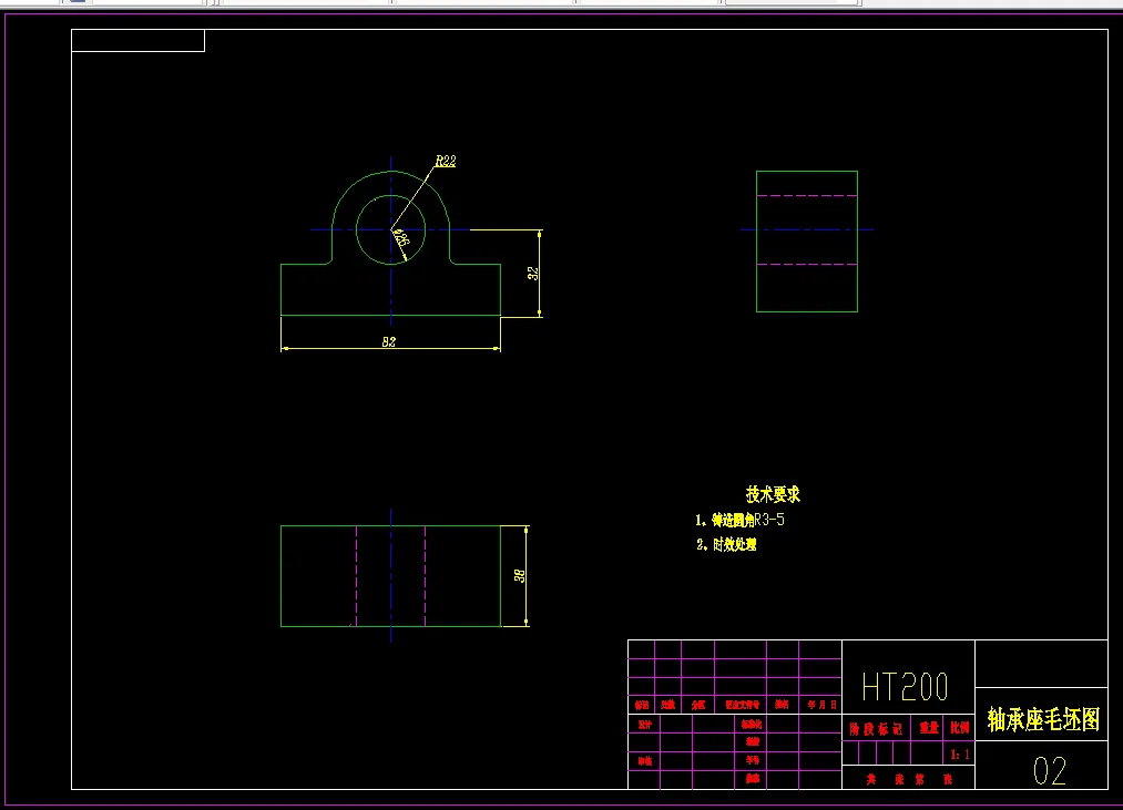 轴承座是用来支撑轴承的,固定轴承的外圈,仅仅 让内圈转动,外圈保持不动,始终与传动的方向保持一致(比如电机运转方向),并且保持平衡;,轴承座的概念就是轴承和箱体的集合体,以便于应用,这样的好处是可以有更好的配合,更方便的使用,减少了使用厂家的成本.至于形状,多种多样,通常是一个箱体,轴承可以安装在其中。随着科学技术的不断进步,它在国民经济中占有越来越重要的地位,发展前景十分广阔,尤其是在汽车和电子电器等高速发展的领域。本次课程设计设计的课题就是轴承座的设计,是在学完汽车制造工艺学后进行的一项教学环节;在老师的指导下,要求在设计中能初步学会综合运用以前所学过的全部课程,并且独立完成的一项工程基本训练。