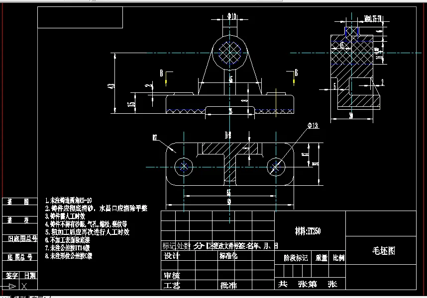 轴承座零件加工工艺及夹具设计是包括零件加工的工艺设计、工序设计以及专用夹具的设计三部分。在工艺设计中要首先对零件进行分析,了解零件的工艺再设计出毛坯的结构,并选择好零件的加工基准,设计出零件的工艺路线;接着对零件各个工步的工序进行尺寸计算,关键是决定出各个工序的工艺装备及切削用量;然后进行专用夹具的设计,选择设计出夹具的各个组成部件,如定位元件、夹紧元件、引导元件、夹具体与机床的连接部件以及其它部件;计算出夹具定位时产生的定位误差,分析夹具结构的合理性与不足之处,并在以后设计中注意改进。