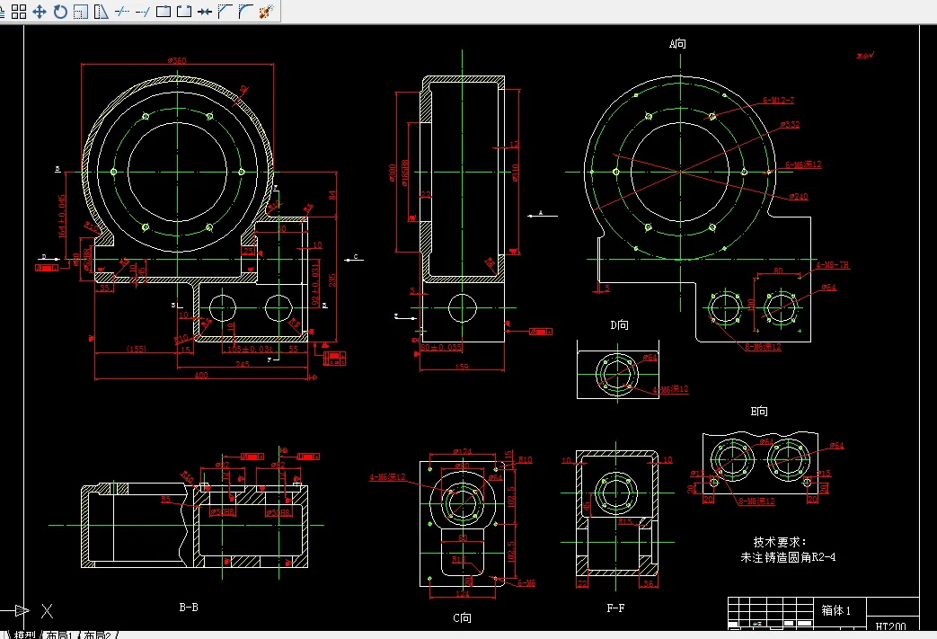 本设计的内容首先通过分析蜗轮箱体,了解到蜗轮在蜗轮蜗杆机构中的作用。运用机械制造技术及相关课程的一些知识,解决蜗轮箱体在加工中的定位、夹紧以及工艺路线的安排等方面的相关问题,确定相关的工艺尺寸及选择合适的机床和刀具,保证零件的加工质量。其次,依据蜗轮箱体毛坯件和生产纲领的要求及各加工方案的比较,制定出切实可行的加工工艺规程路线。最后,根据被加工零件的加工要求,参考机床夹具设计手册及相关方面的书籍,运用夹具设计的基本原理和方法,拟定夹具设计的方案,设计出高效、省力、经济合理并且能保证加工质量的夹具。