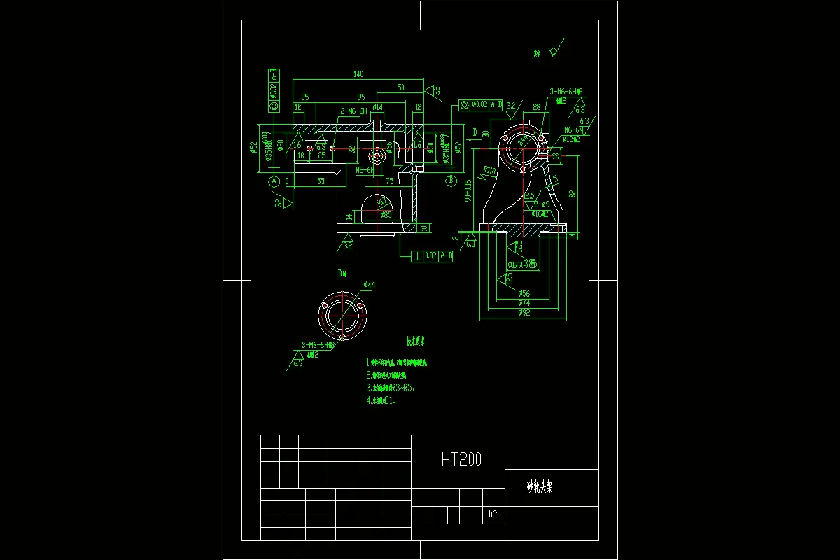 链锯发动机缸体加工工艺规程及其夹具设计,首先依据链锯发动机缸体实体图绘制出二维CAD图(利用游标卡尺、卡规等测量工具),接着对产品结构和工艺性进行分析,编写工艺(参考《典型零件工艺分析与加工》、《机械切削工人实用手册》),然后在工艺内选择钻攻2xM5螺纹夹具,并拆画非标零件图(参考《机床夹具设计与使用一本通》)。
