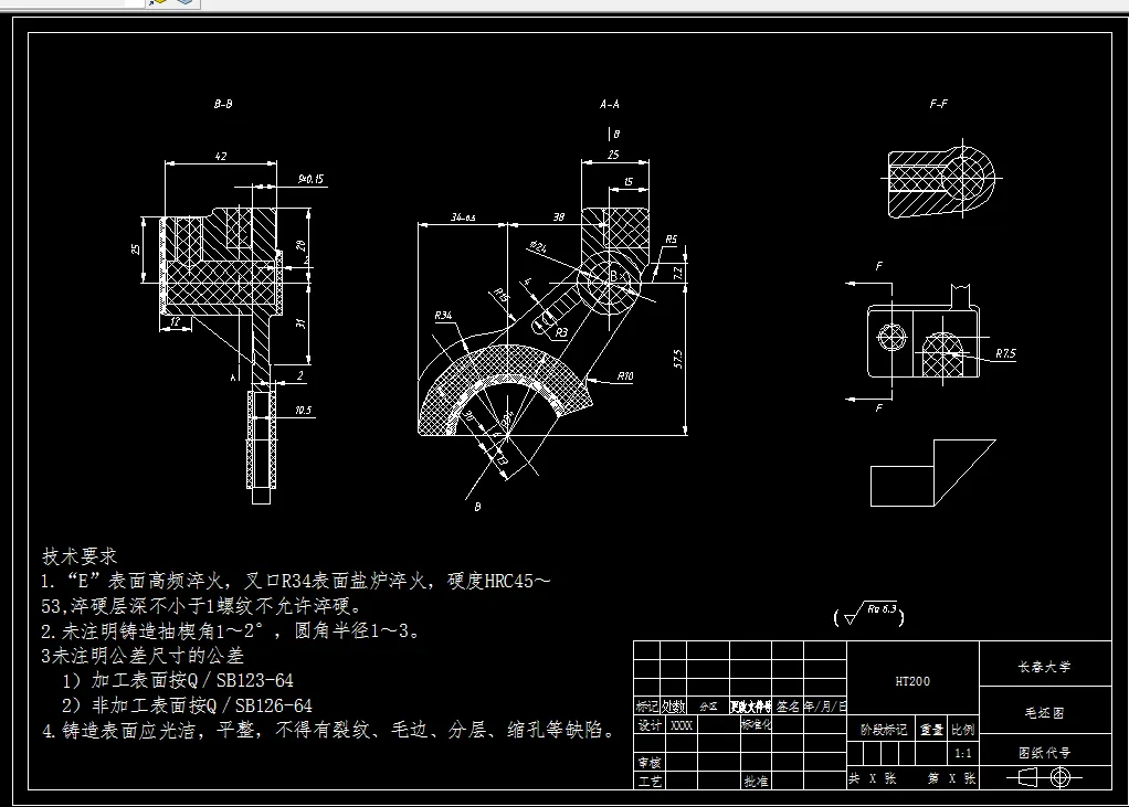 此次设计是对倒挡变速叉零件的加工工艺和夹具设计,其零件为锻件,具有体积小,零件复杂的特点,由于面比孔易加工,在制定工艺规程时,就先加工面,再以面为基准来加工其它,其中各工序夹具都采用专用夹具,并以操作简单的手动夹紧方式夹紧,其机构设计简单,方便且能满足要求。在工艺设计中要首先对零件进行分析,了解零件的工艺再设计出毛坯的结构,并选择好零件的加工基准,设计出零件的工艺路线;接着对零件各个工步的工序进行尺寸计算,关键是决定出各个工序的工艺装备及切削用量;然后进行专用夹具的设计,选择设计出夹具的各个组成部件,如定位元件、夹紧元件、引导元件、夹具体与机床的连接部件以及其它部件;计算出夹具定位时产生的定位误差,分析夹具结构的合理性与不足之处,并在以后设计中注意改进。