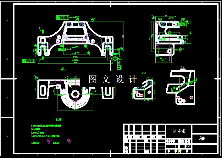 本次设计的承载桥,产品中心孔φ110,φ80,为同心圆,圆心线为基准,最为重要,且有配合精度要求,中心还有小孔φ30,两侧端面有设计安装螺纹孔6-M10,螺纹深度15mm,上端面有2-H6螺纹孔,螺纹深度12mm,此类螺纹孔的中心距离要求到不是很高,结合图形及尺寸公差,需要设计多套专用夹具才能实现,本次只设计其中的钻孔专用夹具,编制各个工序的工序卡,工艺过程卡,数控程序。