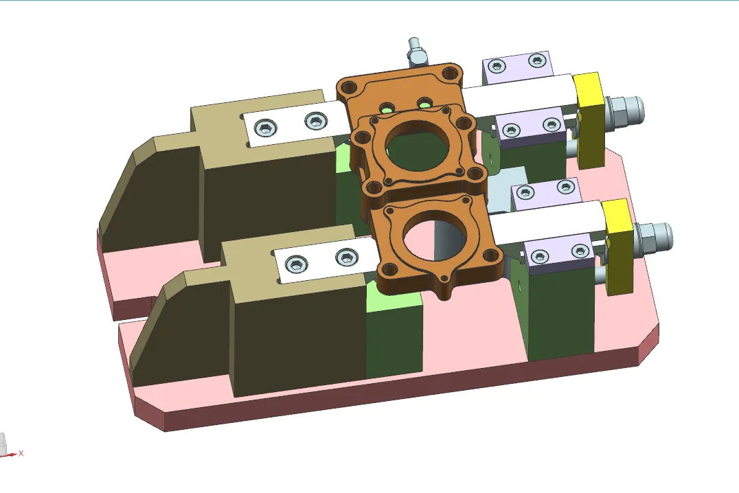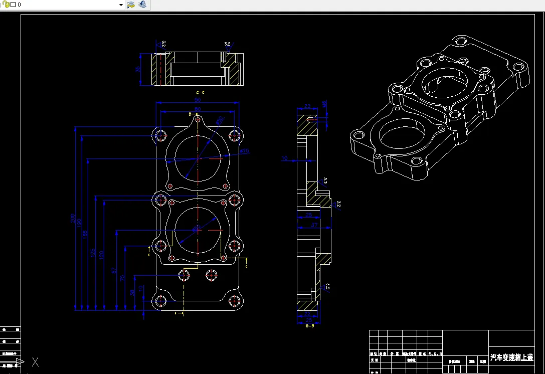本设计是变速箱上盖夹具设计,因为考虑到了变速箱上盖工件的材料和毛坯是经过模具压铸生产来完成的,从结构和形状上面来说上是符合毛坯压铸方法要求。为了能在不拆卸整个上盖的条件下来检查与维修变速箱内部元件的运作与故障情况,在零件的设计时在变速箱上盖的顶部设计两个检查窗口,设计为一凸台构型。为了使变速箱箱体与上盖有一个良好的密封性,上盖与箱体通过使用螺栓和定位销结合时,使用大的接触面。当然在装配是同样需要较高的装配精密度。它在加工的时候以及工艺钻铣孔的夹具,设计内容主要包括本个产品的加工方案和工艺的分析设计、加工的工步计和钻铣平面的专用装夹工具设计这个三部分。在进行工艺的设计前,我优先先对本产品做了很全面的结构分析,知道了零件的各个工艺要求,然后再通过计算设计得出的毛坯,并对选取零件的各个加工生产的基准,进行设计零件所有的生产工艺线路;再对产品中的多个工步进行尺寸的校核弹与计算,重点计算了多各个种工序中的工艺方案装备和铣切削时的量;并对这个专用的装夹工具进行了一系列设计,再计算到本夹具的具体定位的过程中可能出出现精准定位的误差值,同时也分析出本夹具详细的结构和结构性的不足,这些问题我会在日后的工作中改进。