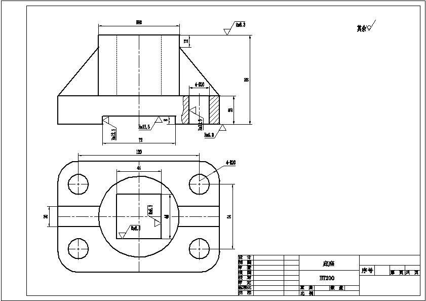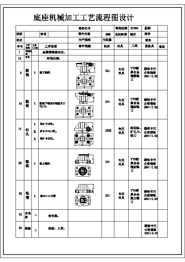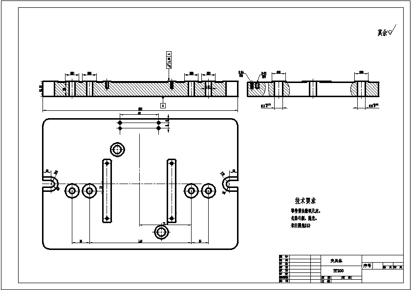 本道工序加工铣上端面,精度不高,因此我们采用2-Φ20孔及端面作为定位基准,采用圆柱销和削边销定位,端面限制3个自由度,圆柱销限制2个自由度,削边销限制1个自由度,这样就限制空间的六个自由度,同时采用移动压板压紧工件,移动压板的压紧力即可以满足要求。