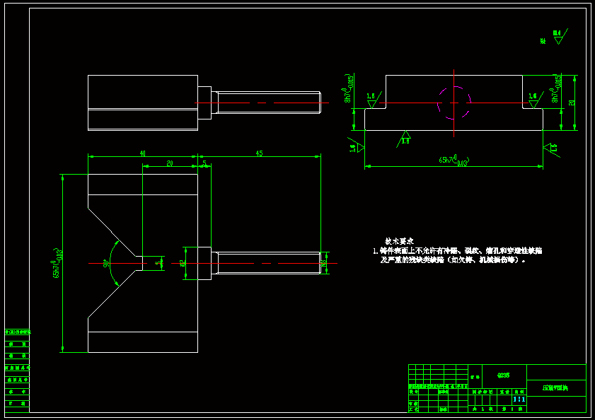 托架加工工艺及铣70尺寸上端面夹具设计 托架零件是一种应用范围很广,在机器中主要起支承、定位或导向作用的零件。本文此类零件为基础,分析其制造方法、机械加工工艺过程及进行专用夹具的设计。