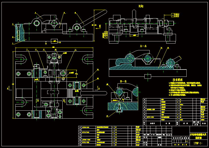 175F柴油机凸轮轴铣键槽夹具设计 凸轮轴为内燃机配气机构的零件,其主要工作表面是两个凸轮面,推动顶杆移动,从而控制进、排气门的开合。175F柴油机凸轮轴。工件材料为45钢,毛坯为模锻件,成批生产规模。设计凸轮轴铣削键槽的铣床夹具。