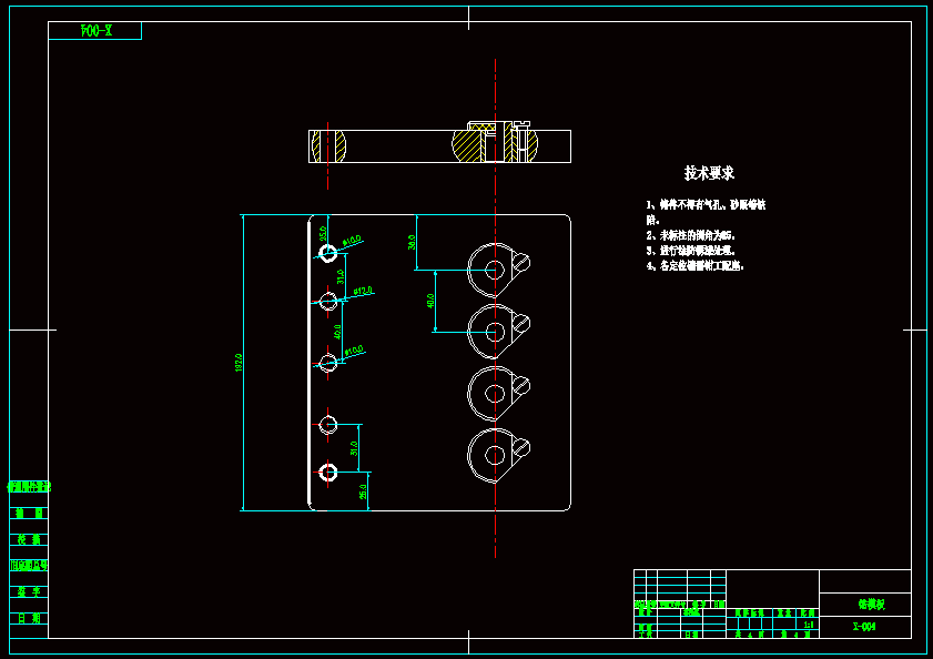钻径向孔夹具的设计本次设计的钻径向孔夹具,采用立式钻床的钻径向孔夹具,主要用于加工工件的径向孔。定位时,在工作台上的箱体侧面上焊接,采用“一面两孔”定位,工件在此定位之后,工件的下底则由带有V型块的辅助支撑进行支撑。由于一次需要同时加工两个左右对称的工件,就需要箱体的表面孔左右对称,需要同时加工,这就需要在安装钻谋的时候,装配要保证钻模左右两部分及中间一部分的同轴度,这样才能保证零件的加工精度。设计的夹具中采用了液压缸的夹紧机构,连杆机构等。