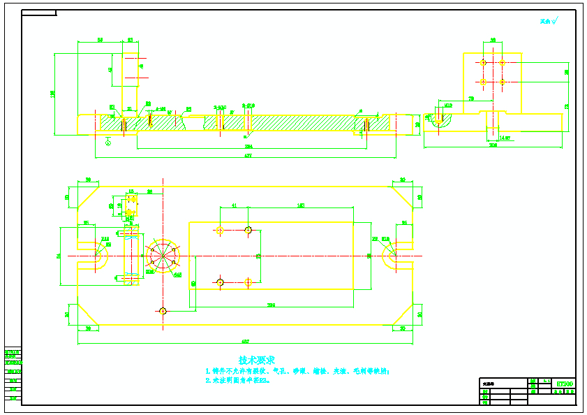 拨叉831005的加工工艺及铣40X47端面夹具设计(气动夹具)此次设计是对拨叉零件的加工工艺和夹具设计,其零件为铸件,具有体积小,零件复杂的特点,由于面比孔易加工,在制定工艺规程时,就先加工面,再以面为基准来加工其它,其中各工序夹具都采用专用夹具,并以操作简单的手动夹紧方式夹紧,其机构设计简单,方便且能满足要求。在工艺设计中要首先对零件进行分析,了解零件的工艺再设计出毛坯的结构,并选择好零件的加工基准,设计出零件的工艺路线;接着对零件各个工步的工序进行尺寸计算,关键是决定出各个工序的工艺装备及切削用量;然后进行专用夹具的设计,选择设计出夹具的各个组成部件,如定位元件、夹紧元件、引导元件、夹具体与机床的连接部件以及其它部件;计算出夹具定位时产生的定位误差,分析夹具结构的合理性与不足之处,并在以后设计中注意改进。