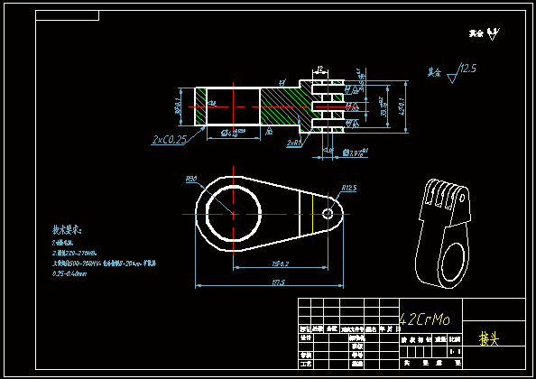 接头加工工艺及夹具设计 接头零件加工工艺及钻床夹具设计是包括零件加工的工艺设计、工序设计以及专用夹具的设计三部分。在工艺设计中要首先对零件进行分析,了解零件的工艺再设计出毛坯的结构,并选择好零件的加工基准,设计出零件的工艺路线;接着对零件各个工步的工序进行尺寸计算,关键是决定出各个工序的工艺装备及切削用量;然后进行专用夹具的设计,选择设计出夹具的各个组成部件,如定位元件、夹紧元件、引导元件、夹具体与机床的连接部件以及其它部件;计算出夹具定位时产生的定位误差,分析夹具结构的合理性与不足之处,并在以后设计中注意改进。