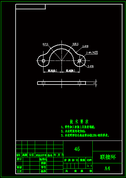 联接环零件零件加工工艺及夹具设计是包括零件加工的工艺设计、工序设计以及专用夹具的设计三部分。在工艺设计中要首先对零件进行分析,了解零件的工艺再设计出毛坯的结构,并选择好零件的加工基准,设计出零件的工艺路线;接着对零件各个工步的工序进行尺寸计算,关键是决定出各个工序的工艺装备及切削用量;然后进行专用夹具的设计,选择设计出夹具的各个组成部件,如定位元件、夹紧元件、引导元件、夹具体与机床的连接部件以及其它部件;计算出夹具定位时产生的定位误差,分析夹具结构的合理性与不足之处,并在以后设计中注意改进。
