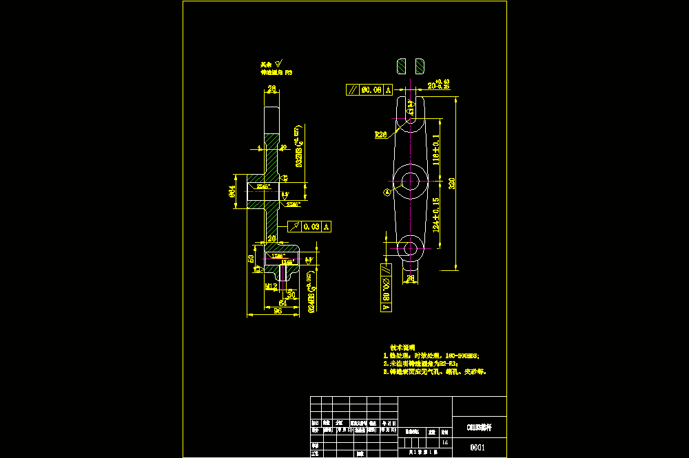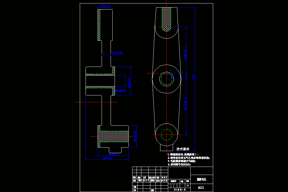 C6163摇杆是C6163卧式车床上变速机构中的一零件,通过Ф32H8孔绕摇杆轴转动使拨叉拨动相应零件从而实现变速。其功用比较简单,承载较小的间歇性冲击力和一定的滑动摩擦。 1.2零件的工艺性分析: 由零件图(附图1)知该零件的材料为灰口铸铁,具有良好的减震性能和耐磨性能。适宜制造该零件。 该零件上的主要加工表面有Ф64右端面、Ф32H8孔、Ф24H8孔 槽 床粗车、半精车。Ф32H8孔和Ф24H8孔是零件上两个较重要的配合表面,其制造公差为IT8,表面粗糙度值为3.2。Ф32H8孔采用粗镗、半精镗、精镗的加工方法,各工序都可以在车床上加工。Ф24H8孔较小相对于A基准有0.08mm的平行度公差,可采用钻、扩、绞的加工方法来保证加工要求, 槽要求相对于A基准有0.08mm的对称度公差。它的内侧为圆弧槽,因此可考虑使用专用圆弧槽铣刀或立铣刀加工。即可以比较容易的保证加工要求又可以提高加工效率。 由参考文献[1]第2卷中有关孔和面的加工经济度等级及机床能达到的位置精度可知上述技术要求是可以达到的。零件的结构工艺性也是可行的。