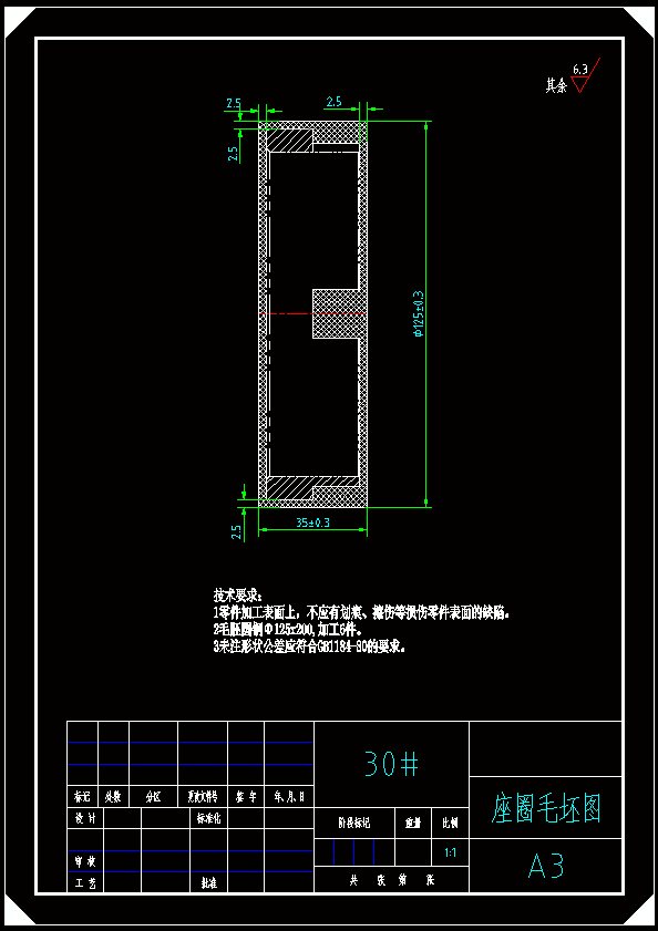 座圈零件的机械加工工艺及夹具设计 含参数可编辑,供大家参考学习,里面含有设计说明书,含加工工艺(工艺卡+工序卡),零件图,毛坯图,夹具装配图,夹具零件图。图纸格式为CAD2007版本软件绘制!