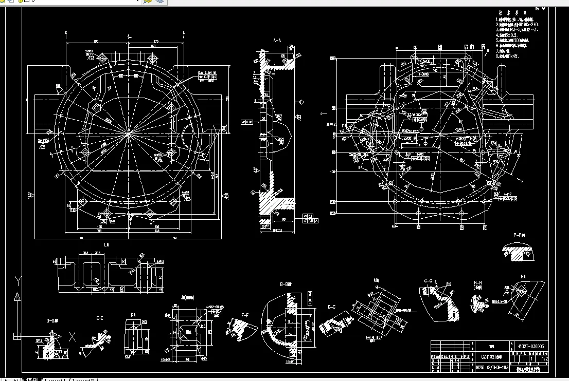 本次设计课题是4102T-030006飞轮壳底面零件加工工艺与夹具设计。首先确定设计方案,收集相关资料,再进行零件图的分析,对零件图进行标准化处理;再明确了加工要求,确定了各表面的加工方案,选择毛坯并确定毛坯尺寸,绘制了毛坯图。明确各机械加工内容,选择底面加工所用刀具与辅助工具(包括刀杆、刀片、刀柄、接杆等);确定底面加工工序尺寸;选择相应的切削用量;选择量检具, 制定了相应的机械加工过程卡片、机械加工工序卡片(底面加工),数控加工刀具卡片(底面加工)确定底面加工定位与夹紧方案,并绘制夹具总图与零件图,最后完成了说明书的编写。
