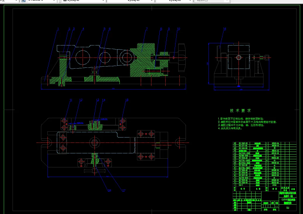 括相关工序专用夹具的装配图以及主要零部件图等,其中1张图必须徒手画,图纸合计2~2.5张零号图纸。