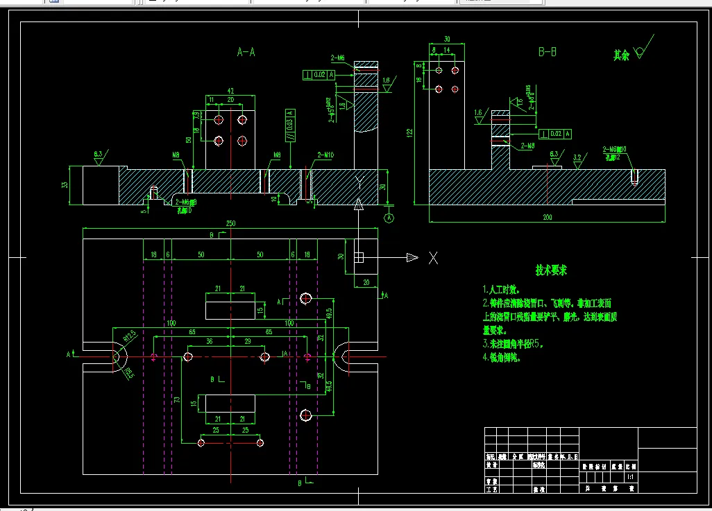 分离叉加工工艺规程及其铣内侧面的夹具设计是包括零件加工的工艺设计、工序设计以及专用夹具的设计三部分。在工艺设计中要首先对零件进行分析,了解零件的工艺再设计出毛坯的结构,并选择好零件的加工基准,设计出零件的工艺路线;接着对零件各个工步的工序进行尺寸计算,关键是决定出各个工序的工艺装备及切削用量;然后进行专用夹具的设计,选择设计出夹具的各个组成部件,如定位元件、夹紧元件、引导元件、夹具体与机床的连接部件以及其它部件;计算出夹具定位时产生的定位误差,分析夹具结构的合理性与不足之处,并在以后设计中注意改进。