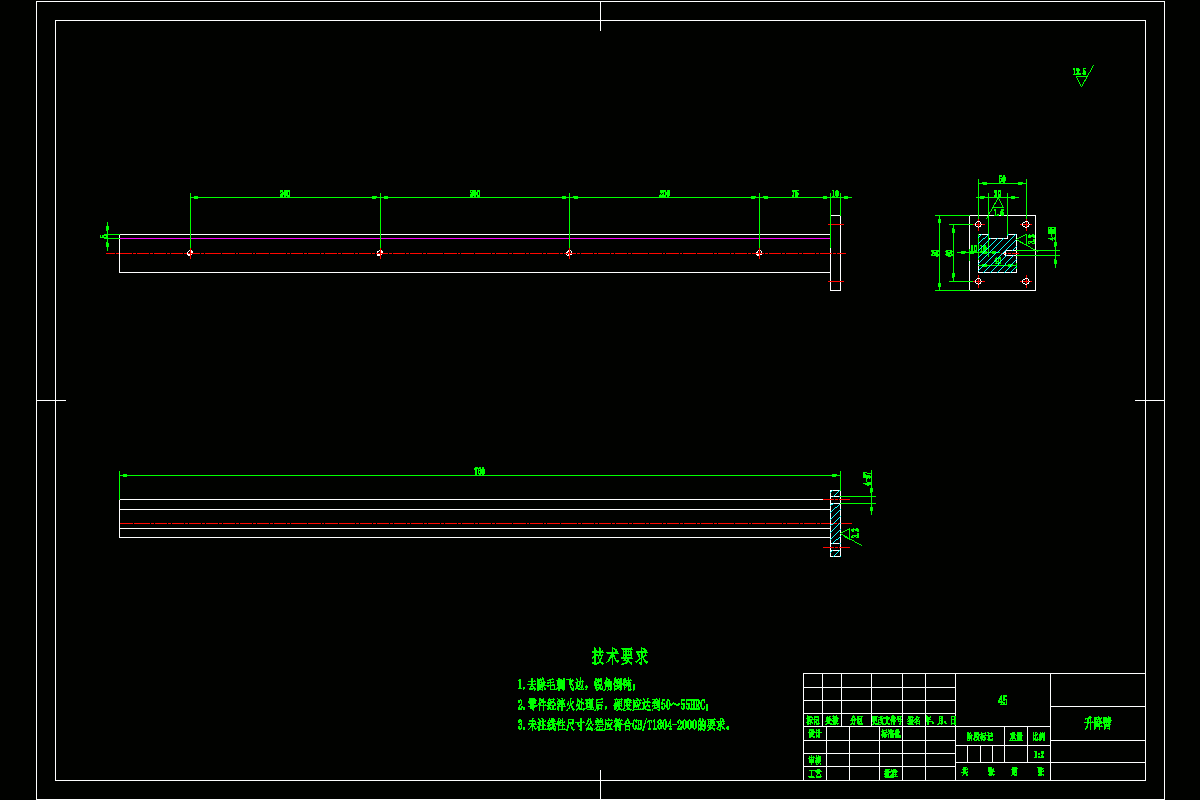 本课题目标是设计大型轴类零件热处理转运装置,其作用是将从加热炉中送出的高温轴类零件送到冷水中进行淬火处理,是轴类零件生产线中重要的组成部分。
