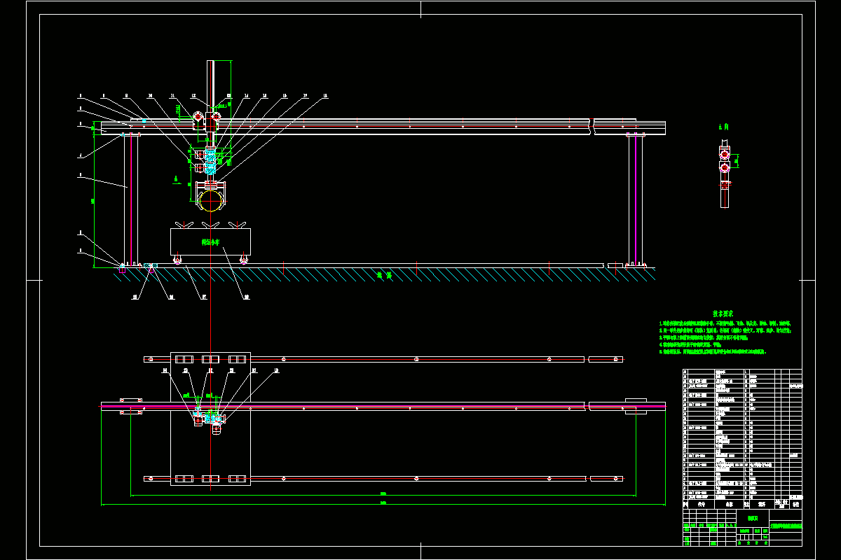 本次设计的大型轴类热处理运转装置由提升机械手1台、转运小车1台组成,机械手采用桁架结构,置于上方实现工件的提升,转运小车承担从加热炉中送出的高温轴类零件送到冷水中进行淬火处理。