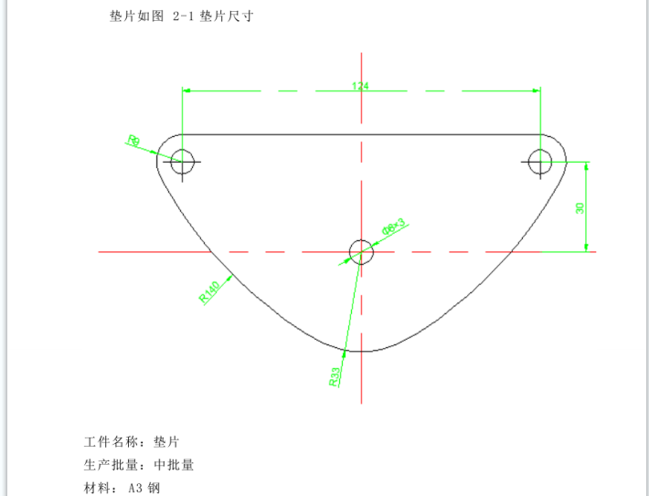 在这次设计垫片同样先进行了工艺的分析,工艺的计算,确定压力机型号,再将各主要零部件的设计表达出来。