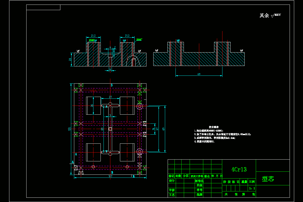 本设计是方形盒盖零件的注塑模具设计,在结合了传统的机械设计后把CAD/CAM技术应用在注塑模具的设计上,在CAD系统实行了模型和注塑模具的设计。本文介绍了我国当前模具技术的发展状况以及CAD/CAM在模具上的应用,其中包括AUTOCAD。主要的机械部分设计,其内容包括塑料注塑模具的工作原理及应用,设计准则。塑料注塑模的设计计算,包括模具结构设计,注塑机的选用,浇注系统的设计,动、定模,浇注系统,脱模机构,顶出机构,冷却系统等设计等方面。如此设计出的结构可确保模具工作运行可靠。