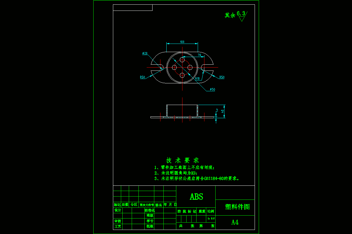 在本设计中,通过运用CAD对电器盖进行一模二穴的设计开发,其中包括凸、凹模的设计、推出机构的设计、注射机的选择与校核、浇注系统的设计、冷却系统的设计、模架的选择等各项工作。在本设计中,设计的重点在成型零部件即凸、凹模的设计和浇注系统、冷却系统的设计。其中浇注系统和冷却系统的设计是一副模具的设计灵魂,浇注系统的设计直接影响着塑件的成型质量和生产效率[1]。因此,对浇注系统的设计是注射模具设计的重点工作。而与此同时,模具的温度对塑件的质量和生产效率也着直接的影响,模具温度的控制直接影响着模具的凝固时间和收缩内应力,从而影响模具的成型周期长短和塑件质量好坏,及其表面粗糙度等。在本设计中着重设计了凸、凹模尺寸、浇注系统和冷却系统的尺寸及其系统结构。通过本次设计,我们首先学习了解了我国塑料模具的现状和发展状况、注射模的基本结构和注射模成型工艺过程以及模具设计的基本原理。