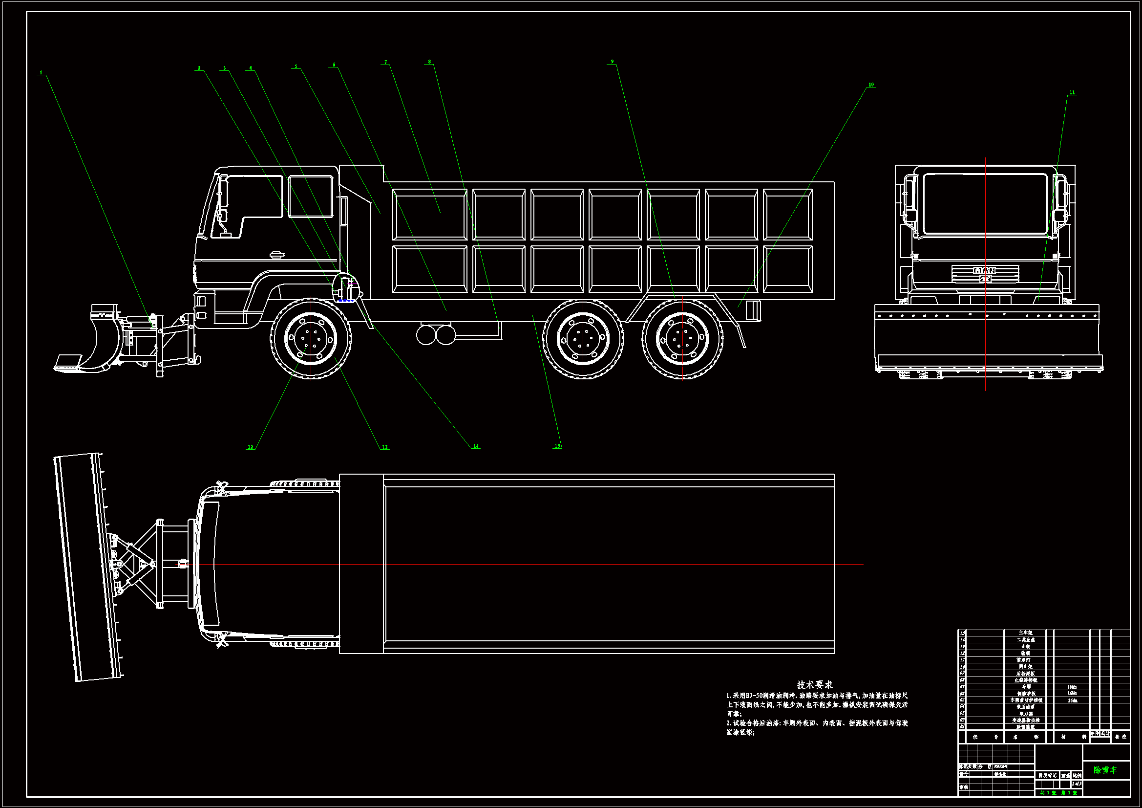 本文对除雪车的除雪铲板进行结构参数的确定与设计,分析了除雪铲工作阻力,并对所选取的发动机功率进行校核。通过对避障四杆机构、液压系统的研究与设计,确定除雪车的最终方案。 本文的主要工作如下: 1、研究除雪车的种类与特点,确定除雪车的设计 2、考虑除雪作业要求、工艺性、结构性等因素,参照相关试验数据选取合适的雪铲结构参数。对除雪铲板空间曲面进行分析、设计; 3、通过除雪车作业计算,分析前雪铲作业时整车的牵引特性及功率匹配特性; 4、通过对除雪装置的液压系统和避让机构的回位弹簧进行计算与设计。 关键词:除雪车、铲板曲面、除雪装置、四杆机构、液压系统