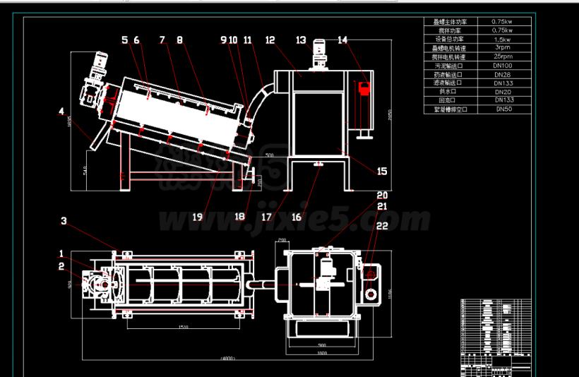 与现有的过滤器的机器,本文提出了一种堆迭的螺旋式污泥脱水机的设计方案,该设计包括高压脱水装置的驱动装置的结构设计。包括脱水装置的脱水设计:支持香港坂和刚性板加筋板,屏风,过滤液收集室,外支架,填料密封和刮刀,支撑法兰连接结构。