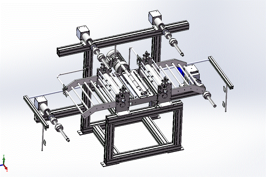 在对双轴贴合机的功能及性能的分析基础上,同时参阅了大量的资料,制定了贴合机的总体结构设计。贴合辊两端安装带座的调心球轴承用来消除轴承座孔的同轴度误差、安装误差或挠曲变形等影响驱动辊与收卷辊平行接触的因素。利用了作图法确定了各主要部件的位置,为机构尺寸计算和图纸设计工作提供了设计依据和基矗最后用SolidWorks和AutoCAD绘制了三维及二维工程图。