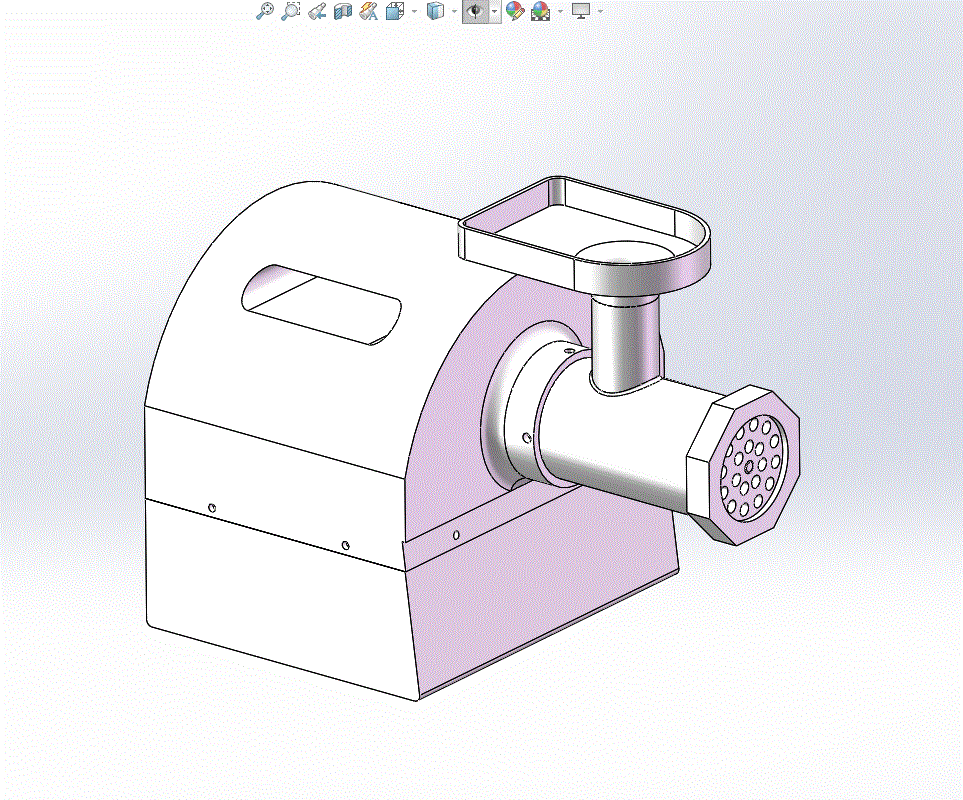 本文就主要论述了家用绞肉机的工作原理、主要技术参数、传动系统、典型零件的结构设计等等。首先介绍了家用绞肉机的工作原理,即将肉放进托盘后,因为肉的重力和推进螺杆的作用,将肉连续地送往绞刀口进行切碎。托盘面积较大,待绞肉时,可将多余的肉放在托盘上,逐步地推进绞筒内,减缓对刀具的压力。同时采用弹性活销联轴器联结螺杆和电机,结构简单,可靠性高,工作平稳可靠,拆卸方便。推进螺杆的螺距后大前小,根径后小前大,使其推进螺杆与绞筒之间的容积逐渐减小,实现了对物料的挤压作用。采用可替换的绞刀和挤肉样板,可以满足顾客绞肥肉和瘦肉的不同需求。