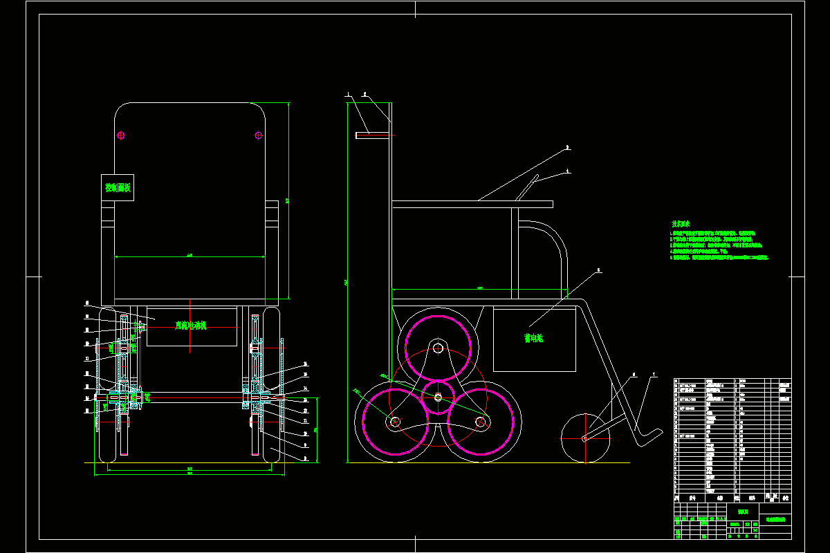 本次设计主要针多功能电动爬楼轮椅进行设计。首先,通过对电动爬楼轮椅结构及原理进行分析,在此分析基础上提出了总体结构方案;接着,对主要技术参数进行了计算选择;然后,对各主要零部件进行了设计与校核;最后,通过AutoCAD制图软件绘制了电动爬楼轮椅装配图及主要零部件图。整个设计过程中包括其中的数据计算、传动系统设计、电机等外购件选型、应用环境、维护保养等方面进行系统设计。