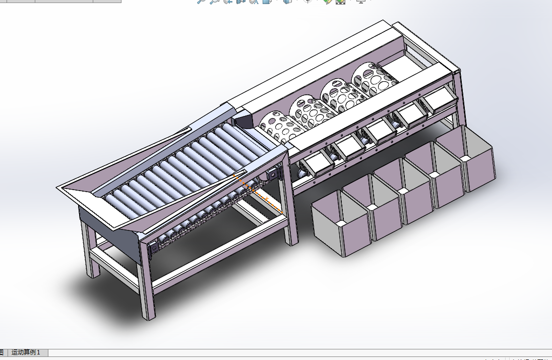 本次设计的橙子滚筒式分级机主要是根据尺寸大小对橙子筛分,以此提高对橙子的筛分精准度及效率。以我国现今的国情,不可能采用人工对橙子大小进行筛分,因为此种方式准确度及效率均极低。因此,本设计的橙子滚筒式分级机,采用多个滚筒的形式,对供料的橙子以尺寸为标准进行筛分出不同尺寸规格的橙子,提高对橙子的筛分精度及效率。