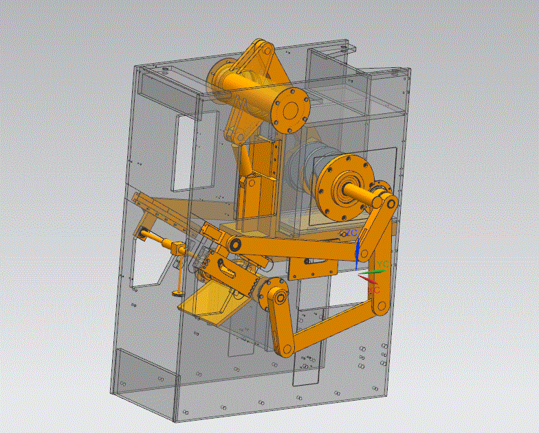 香皂打印是香皂生产环节中的一个重要环节。香皂打印机是实现香皂打印的关键仪器。其打印香皂的质量决定了香皂最后的外观质量,进而影响香皂产品在消费者使用感受。目前国内许多中小企业采用生产效率较低的卧式打印机。卧式打印机使用回转模与其他机构配合实现香皂打樱由于回转模要进行180°的旋转运动,这样导致离心力较大,容易使得打印机无法吸住香皂。此外,卧式打印机整体使用的零件较为复杂,维护成本大,长时间工作会导致机器打印精度下降,使得打印出的香皂质量差。本课题设计采用立式香皂打印机来进行香皂打樱并且香皂打印机的核心传动机构采用共轭凸轮来保证香皂打印质量。共轭凸轮机构将动力传递给其他机构,其他机构在共轭凸轮机构的巧妙设计下,能够实现香皂打印的整个过程。本次设计将利用Camtrax软件实现共轭凸轮的主凸轮设计,再利用UG软件的运动仿真功能实现共轭凸轮副凸轮的设计。下模四杆机构的设计利用根据按两连架杆的三个对应位置的原理使用作图法来进行设计。电机根据实际需求,选用伺服电机来提供动力,并根据立式香皂打印机打印速度需要进行减速器的选龋然后对立式香皂打印机的主动轴进行校核。最后对立式香皂打印机的运动机构进行运动的分析。