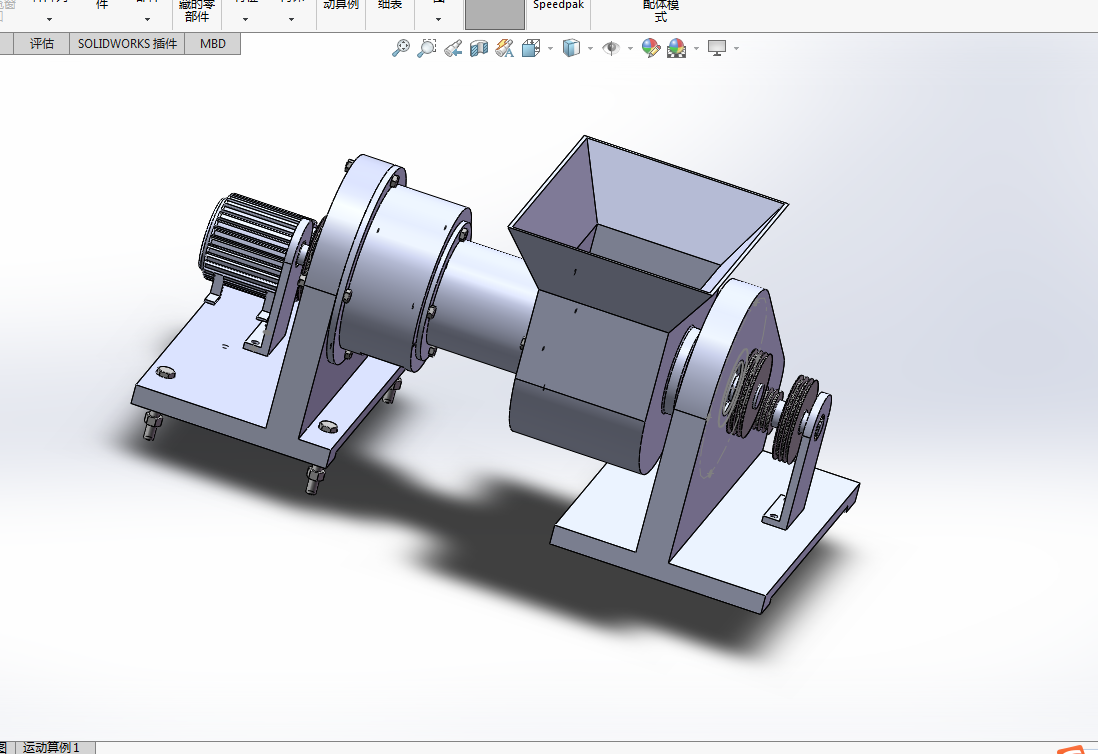 然后用solidworks等软件工具,进行实体建模。对秸秆压块机的压缩部分采用了优化设计计算,并对其结构进行进一步分析。同时,采用了螺旋进料装置提高了输送效率。