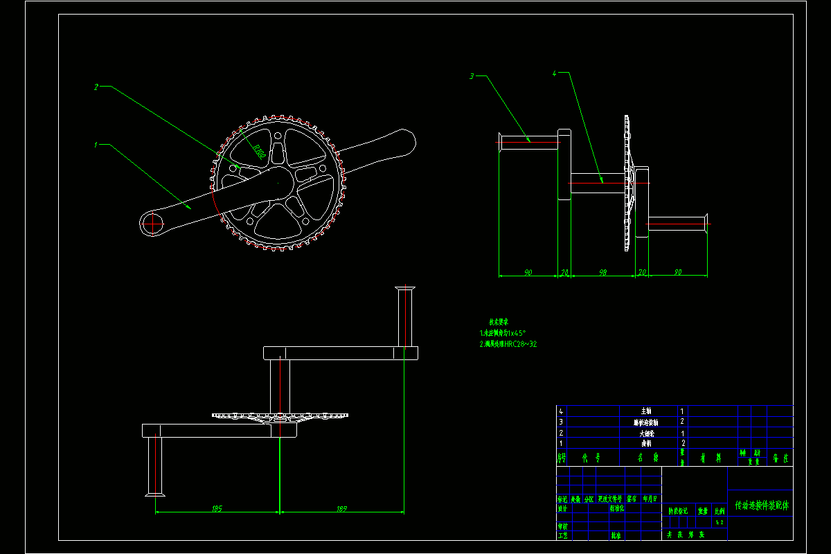 2.在结构设计上选取合理参数,保正安全性能。确定双人自行车的部件类型、尺寸、材料等参数,参照单车的结构选取零件,在设计中尽量将尺寸与单车零件相配合。规避传统双人自行车的现存弊端,使双人自行车有更加合理、稳定、安全的结构。