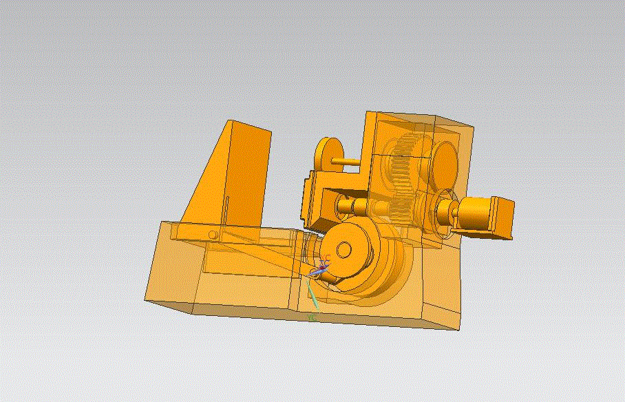 此设计主要先确定个传动机构运动所需功率,进而选择相应电机,然后选择联轴器,由相关公式计算得出齿轮参数,预估轴的最小直径,并结合齿轮参数及轴承的型号,设计阶梯轴。为了改变传动方向加设一对蜗轮蜗杆,为了使刀具能够往复运动在设计一对去冰连杆机构。