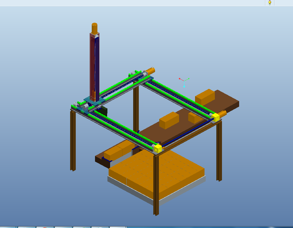 第四步:是通过Pro/E画出该码垛机的总体三维结构图,通过CAD画出码垛机总装配图和其零件图,最后通过Pro/E画出该码垛机运动仿真。
